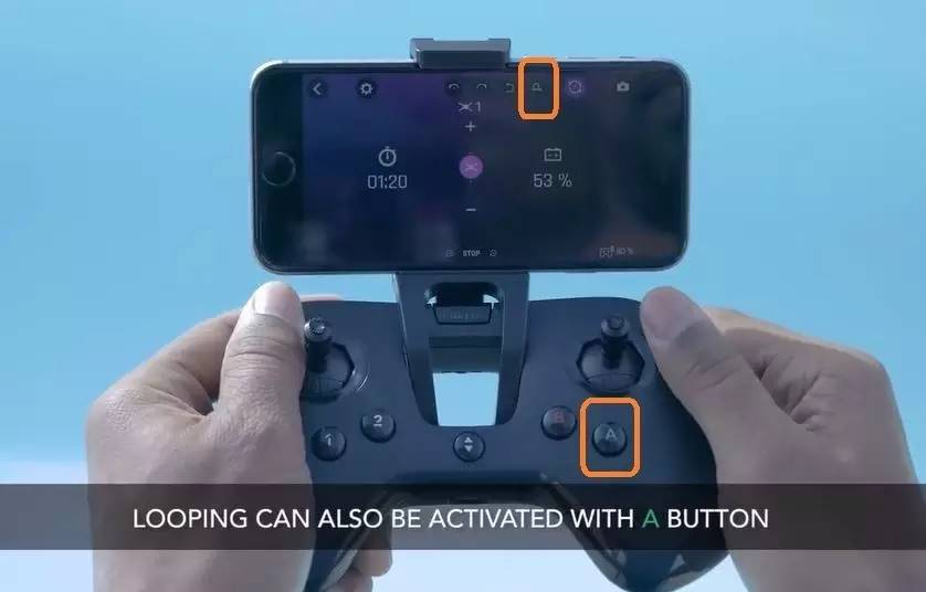 按下“回路”动作的图标(或遥控器上的 A 键),Parrot Swing 即可在几秒钟之内完成一个回路动作。