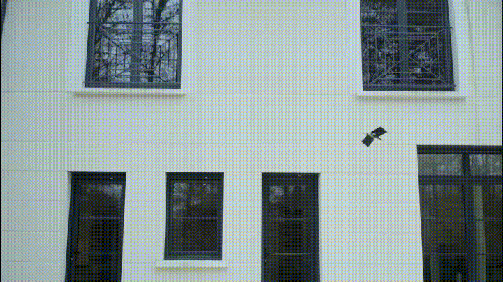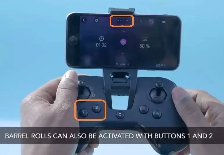 这是 Parrot Swing 最令人大开眼界的一项特技。点击图标激活“桶滚翻转”动作后,它将会一边快速向前一边做左空翻或右空翻动作。