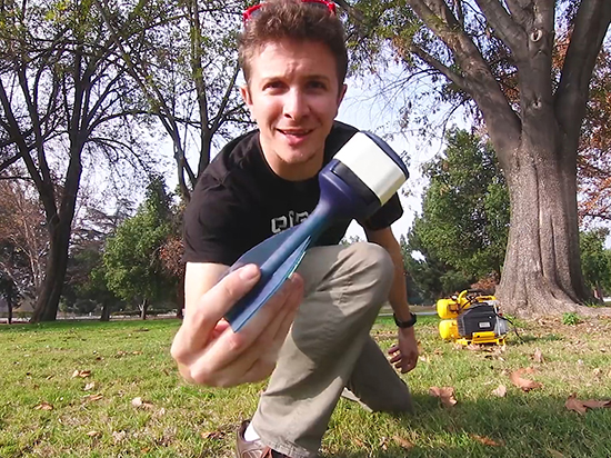 YouTube的博主@Sam and Niko就和几个朋友DIY了一门小型空气炮,然后使用3D打印技术为GoPro HERO5 Session造了一个适配器,让它能够塞入空气炮里面,并且能够在射出之后保持GoPro摄像机的飞行稳定。