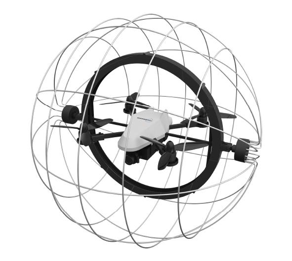 仔细观察不难发现,Droneball的设计其实没有想象中复杂。它其实是采用了双圆环的结构,机身通过塑料圆环固定在外层金属网状圆环上,这样螺旋桨既有运行空间、又不会外露,达到安全防护的作用。
