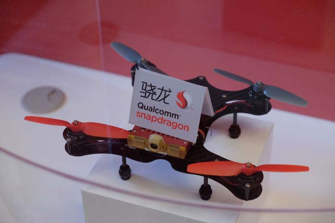 高通所展示的是其骁龙飞行无人机平台(Snapdragon Flight Drone Platform),能够实时地控制无人机,并且具备机器学习的功能。在不依靠GPS的情况下,通过这个平台的计算能力,无人机可以在室内以及各种不可预测的环境中飞行。
