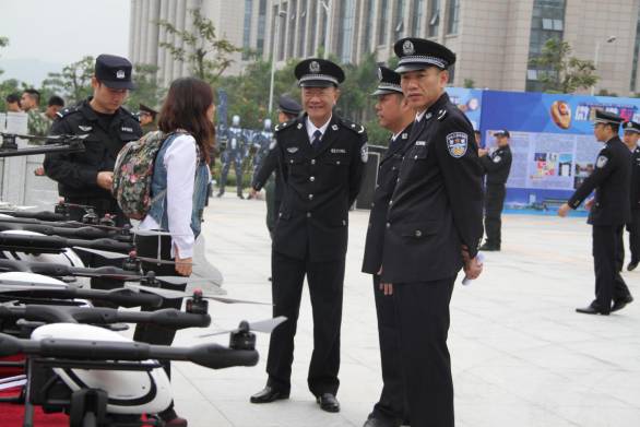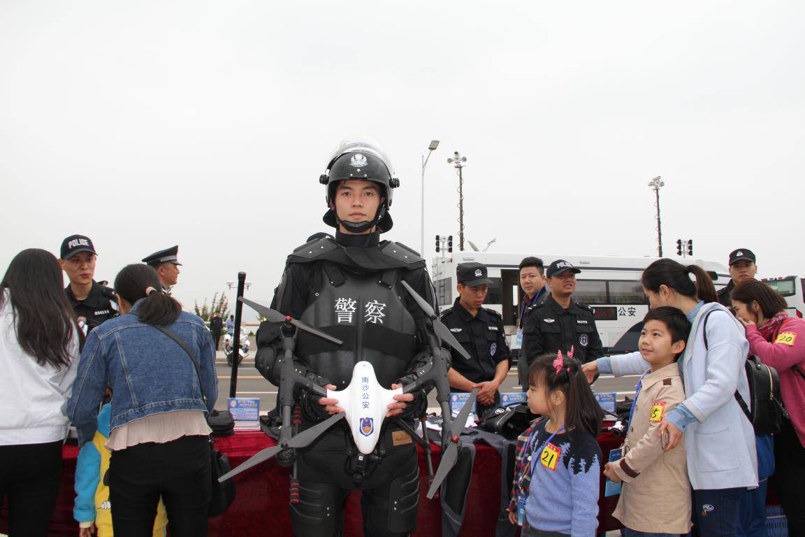 南沙公安分局带来了警用摩托车,反恐冲锋车、综合指挥车在内的警用车辆,还有海上巡逻快艇、消防船,以及特警蛙人潜水装备、警用枪支、消防摩托车等警用设备。海、陆都有了,自然少不了“空”——无人机。华科尔天眼Voyager 4 ,带有18倍光学变焦相机和4G LTE组网直播功能,是公安执法的利器,作为本次警用装备展的无人机主力部队,登上了舞台。