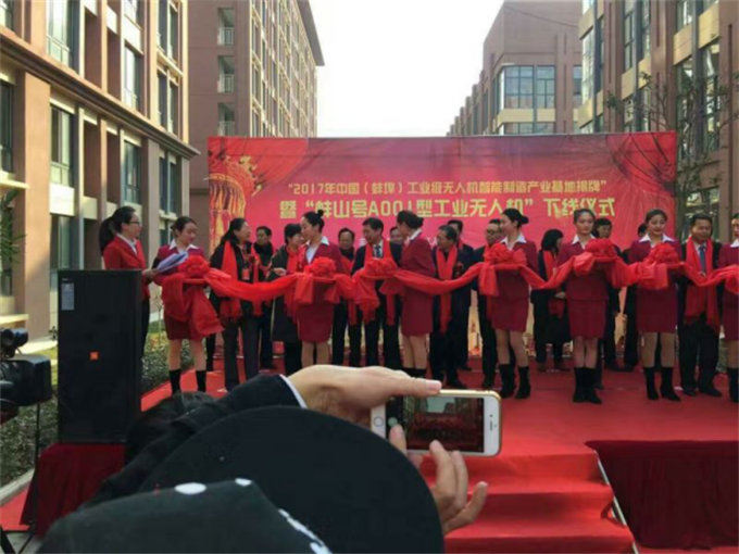 在本次开业仪式上, 同期举办“中国(蚌埠)工业级无人机智能制造产业基地正式揭牌”,蚌埠市首架工业级无人机“蚌山号A001”正式下线,同时,《安徽省植保无人机行业标准》在各位无人机专家、农业专家的热烈交流中进行了深入研讨。活动由由蚌埠市蚌山区人民政府主办,深圳无人机行业协会、全球鹰(深圳)无人机有限公司协办,安徽全球鹰无人机有限公司承办。