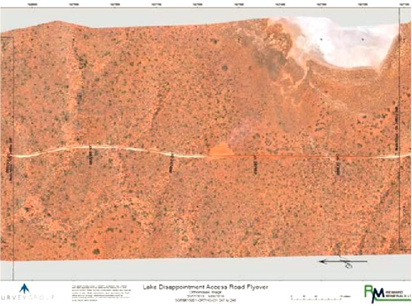 2015年冬天,Survey Group公司承包了一个公路廊道测绘项目,采用senseFly无人机进行测绘。该廊道位于澳大利亚西部的Pilbara地区,Disappointment湖的西面,长250千米,宽400米,属于Talawana公路的延长项目。该项目的客户公司Reward Minerals,要求项目提交成果为1mx1m grid栅格格式的数字表面模型(DSM)与正射影像图。