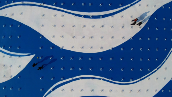 (图注:亿航工作人员正在布置无人机编队列阵)