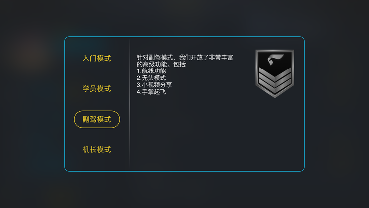 最后不得不说这台外观非常有亲和力的无人机,内置的玩法却非常像一款游戏,你需要不断的升级,才能逐渐开启一些特殊的功能,例如声控、跟拍、避障,而不是用一个简单的「新手模式」把你卡在门外,这还是有点意思的。