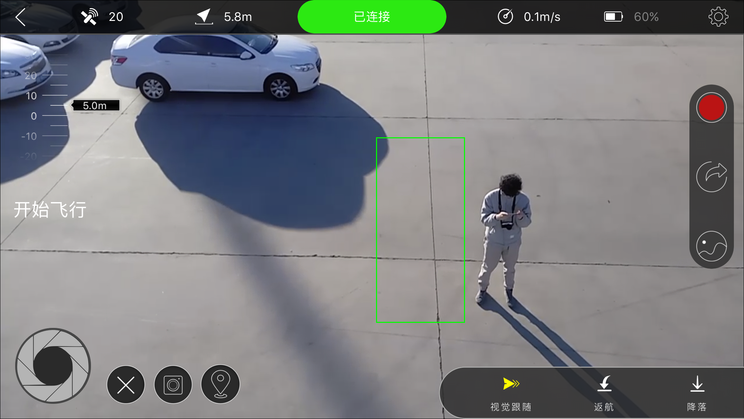 跟随只能说体验依旧一般,和 DOBBY 类似,框选是静止的,当无人机有飘动的时候不容易选定跟随对象,同时跟拍的精准度也还有待提高,虽然是多物体识别,但个人感觉还不如只高度优化识别人脸或者人形这样来的体验更好。