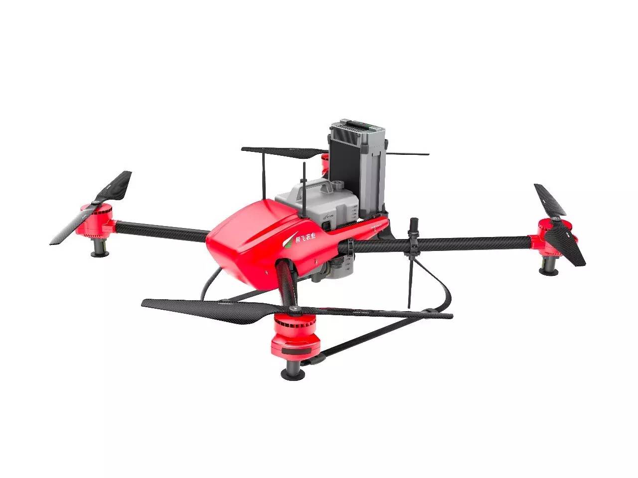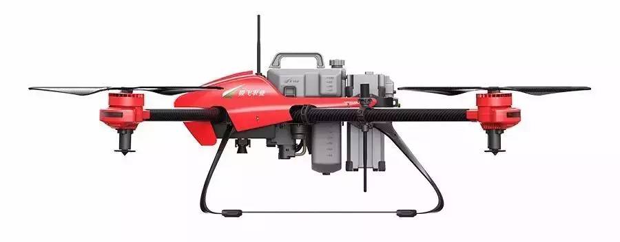 亮红色机身,四旋翼,不等长机臂,极飞 P20 2017 的外观设计绝对是个颜值炸裂的偶像派。