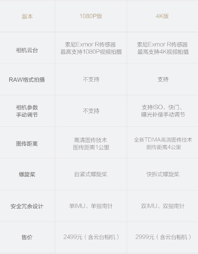 以下是小米无人机4K版的主要参数: