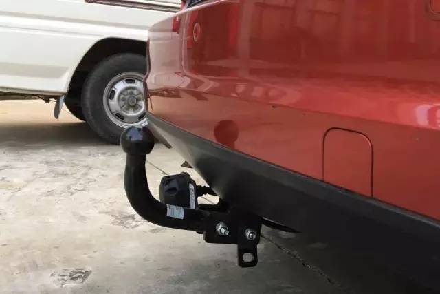 拖车球(圆型部分)一般选用欧洲标准的拖车球,直径为 50mm 。拖车球左侧是用于接挂车插头的插座。