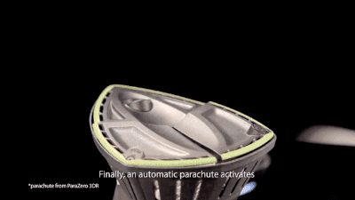 即使单桨发生意外也可在0.5秒开启内置降落伞安全降落。