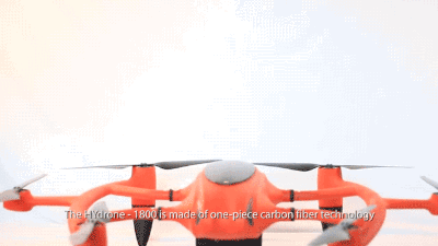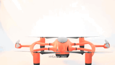 HYDrone-1800采用6轴设计,轴距约1.8米,最大载重25kg,最大飞行半径100km。