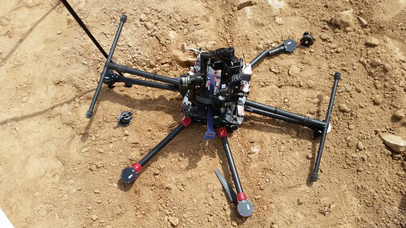 这架大六轴无人机分成3块,采用全碳纤维设计,机身重量仅相当于大瓶可乐,而且支持快拆。