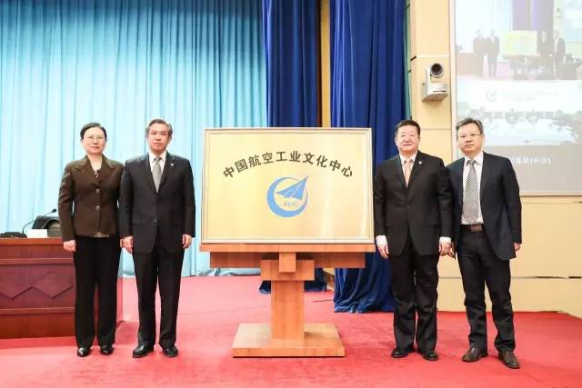 ▲谭瑞松、李玉海、韩天、张涛为中国航空工业文化中心揭牌
