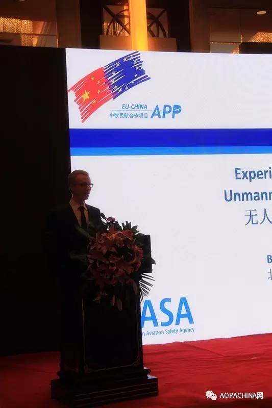 中国民用航空局飞行标准司朱涛副司长在致辞中指出:“中国民航局作为无人机管理的直接部门,在人员资质、运行及空管等领域颁布了一系列管放结合的规范性文件,截止到今年2月份我国持有无人机合格证的驾驶员超过11027名,前年的数量在几百名,他的发展速度是惊人的。无人机产业链的全流程联合监管共同发展共同格局已经逐渐成熟,希望各位与会者在此次中欧合作项目这个平台交流当中能够有所收获,并且也能够希望借此次交流进一步深化中欧双方在无人机管理方面的合作。