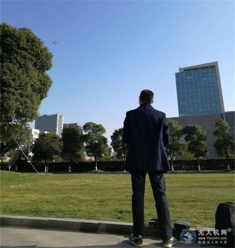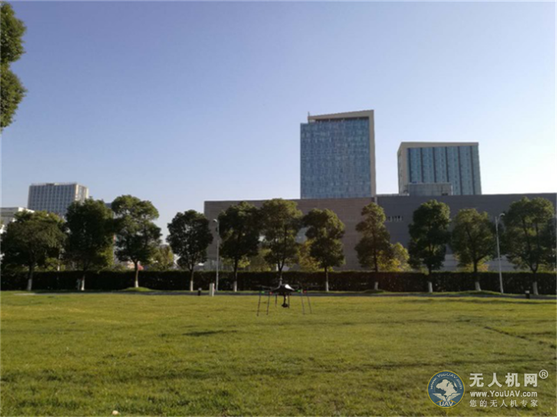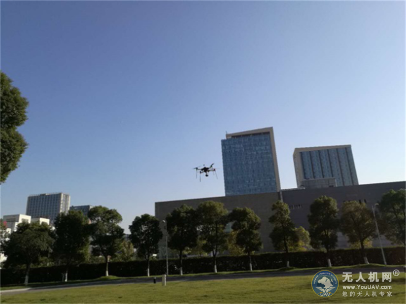 海康威视四旋翼飞行器UAV-MX4080A平稳升空,这块空域海康公司是经过申请之后才用作无人机试飞场地