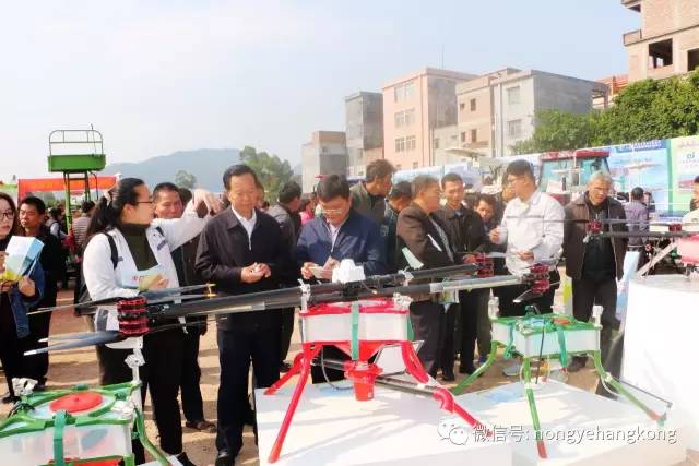 3月3日上午,全省春耕备耕暨农业科技、放心农资、农业机械“三下乡”现场会在罗定市太平镇太东村举行,现场会组织了省农科院、华南农业大学等多所高等科研院校100多名专家现场开展春耕生产技术指导,现场推介主推品种182个、主推技术100多项,展示近100台套适用于水稻生产、丘陵山区的农机产品。副省长邓海光,省农业厅厅长郑伟仪,市委副书记、市长王胜等参加了现场会。珠海羽人农业航空有限公司“谷上飞”系列农用无人机产品得到领导的认同和赞扬,说了这么多,小羽迫不及待要给大家上图啦,感受下现场气氛吧!