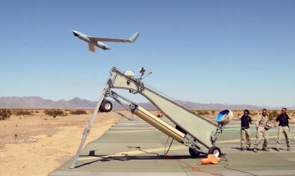 美制“扫描鹰”无人机,因为该机十分轻巧,所以采用人力拖拉发射方式起飞