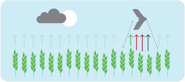 Parrot Sequoia解决方案包含两个传感器。朝向植物的多光谱传感器通过四个独立单元来捕捉植物反射的光:绿光波段、红光波段、以及人眼不可见的两个红外波段。