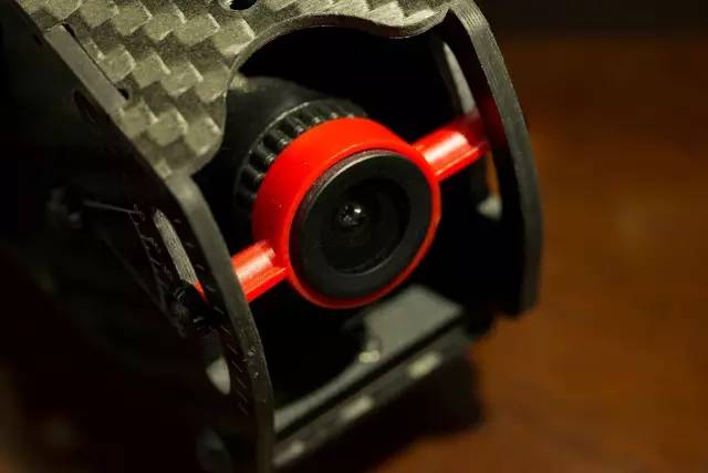 穿越机在飞行过程中,避免不了撞击。很多时候飞机在撞击后仍能飞行,但相机会因为撞击震动而改变角度,使得飞手难以继续飞行,被迫降落。Furious的FPV相机角度不仅仅是“可调”,更是可固定的。相机镜头外设有一个红色的固定架,可用两边的螺丝进行锁紧,抵御因撞击带来的震动,保持相机角度。