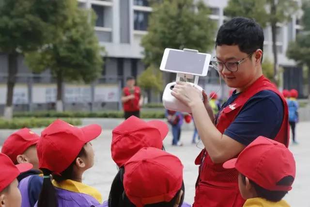 体验完虚拟飞行后,培训人员带领大家“真实体验”,由专业人员操控无人机,使小记者们知道无人机的种种操作方法以及利与弊。