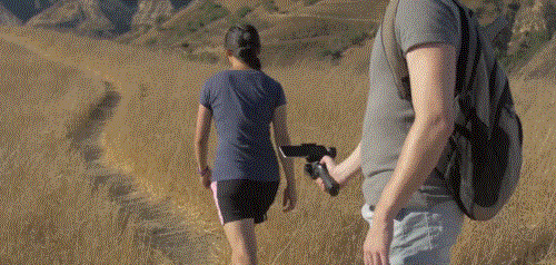跟着拍摄目标平行移动,只要手持Osmo Mobile的高度保持不变,就能得到平稳流畅的画面。
