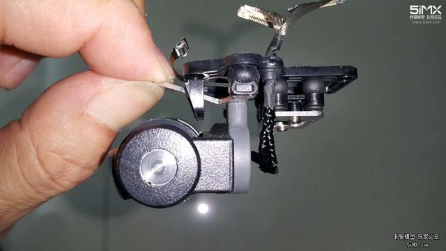 重点来啦,上图上方模块位于上文提到的机头黑色区域,主要由一颗摄像头和两颗LED组成,笔者猜测这是单目视觉感知摄像头,意味着Spark可能具备视觉避障的能力,不过应该要等到发布之后才能知晓了。