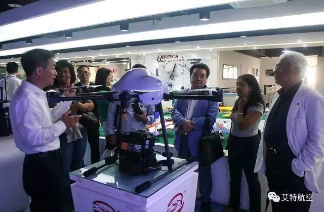 艾特航空科技董事长林卫东热情接待了他们并带其参观了艾特航空展厅,详细了解艾特AT系列无人机技术特点及各项实际应用吊舱。