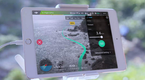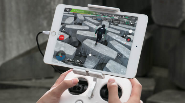 图传系统仍然使用了Lightbridge高清图传系统,最长图传工作距离7公里,图传画面720P@30fps。使用手机来配合遥控器工作时,延时为220ms左右。此外,大疆还为Phantom 4 Advanced配备了一个一体式遥控器:Phantom 4 Advanced +。它自带一块1080P分辨率的显示屏,最高亮度可达1000cd/m²,即使是阳光直射下也能看清楚屏幕内容。这个一体式遥控器续航时间长达5小时,可以满足多次起降作业的需求。