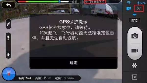 无人机搜索不到足够的GPS信号,或是飞行过程中GPS信号突然丢失,这两种情况都称为丢星。丢星时,无人机会产生漂移,极有可能发生意外事故。因此一旦App提示GPS信号不足时,需及时控制无人机返航。