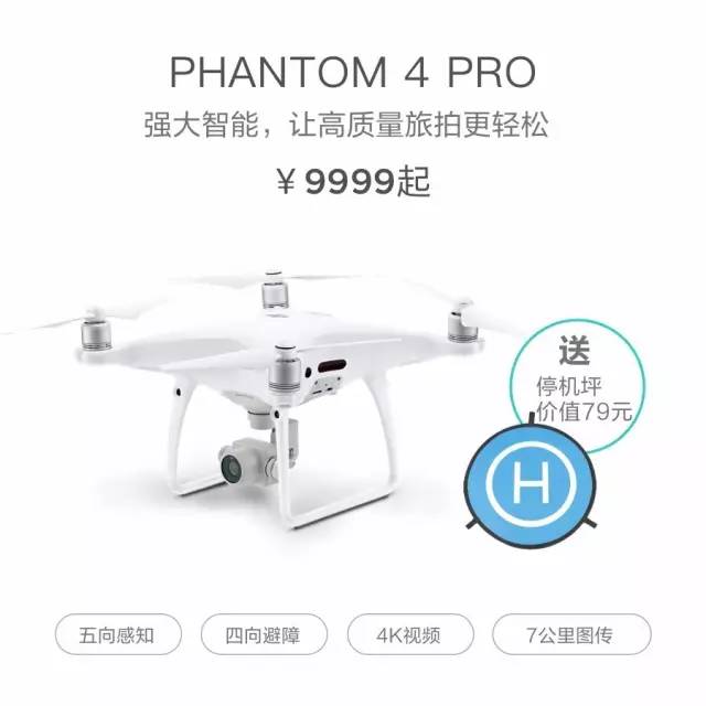 Phantom 4 Pro强大的影像拍摄性能结合5向环境识别和4向避障能力,在保证高画质的拍摄同时,让飞行更安全、更智能。现在购买,限量赠送价值79元的停机坪。
