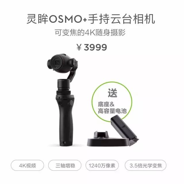 具备3.5倍光学变焦的Osmo+是旅拍中的手持拍摄“小能手”。远近自如的TA能让你随时随地拍摄稳定的4K影像,不错过旅行中的精彩瞬间。现在购买即可获赠底座+高容量电池。