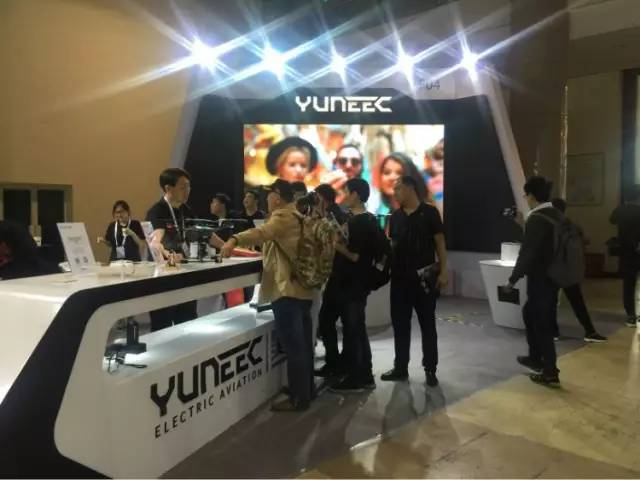 这次展位的设计感UPUPUP!赫然醒目的YUNEEC,直入你的视线。灯光已就绪,下面开场~