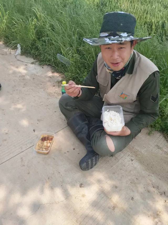精英团的队员也不娇气,认真干活,吃饭席地而坐,辛苦了!