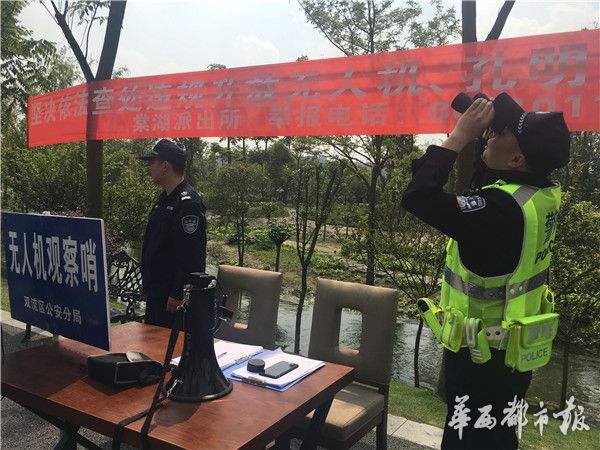 从每天8时至20时,成都警方已组织力量分班次开展无缝监控,一旦发现网格内存在无人机非法飞行的情况,立即向辖区巡控民警联系,巡控民警将迅速处理。据悉,每个点位之间的距离大概为两公里,点位民警的监测范围也是两公里。