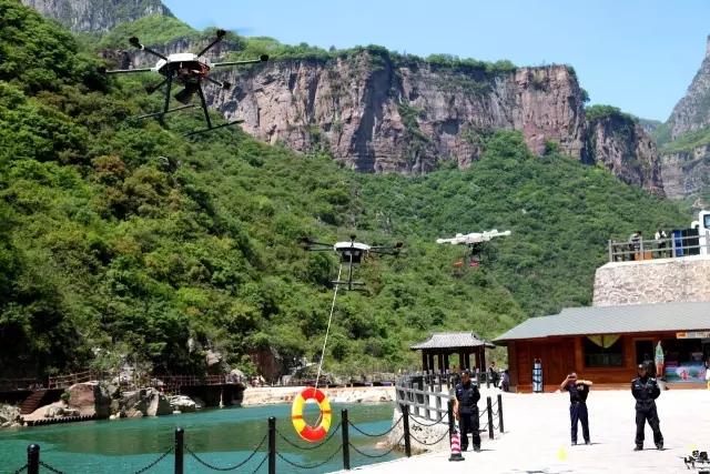 本着“创新创意、智慧管理”的理念,宝泉景区率先垂范引进无人机技术,用高科技手段进一步提升景区统筹管理与安全保障,作为景区的“千里眼”和“顺风耳”。其功能主要体现在四个方面:利用无人机搭载监测系统,通过红外检测热力传播的性能,能够迅速的将景区内各景点的人流量数据传回信息中心;利用无人机搭载喊话器,便于景区管理人员及时疏导引导客流,避免拥堵踩踏事件发生;利用无人机搭载救生圈、救生包,在发生紧急情况时,能及时协助地面人员进行救援工作;利用无人机搭建人脸识别系统,帮助游客在景区内找回走散的亲朋好友。