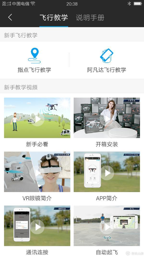点击左上角的小问号,就会发现APP里还附带详细的说明教学视频,让第一次飞行的小白也能轻松掌握飞行要领。作为严谨的教学视频而且主播是个漂亮妹子,我下载到手机里反复看了好多遍,以便仔细学习飞行技巧。