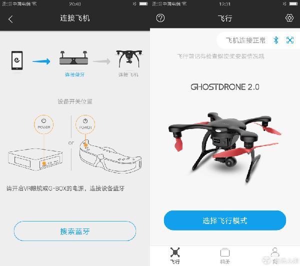 下载亿航安装APP,蓝牙连接VR眼镜和飞机,手机就成了无人机遥控器了。