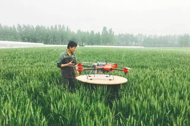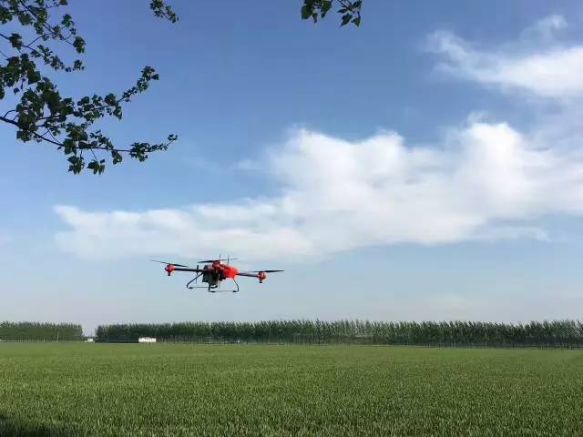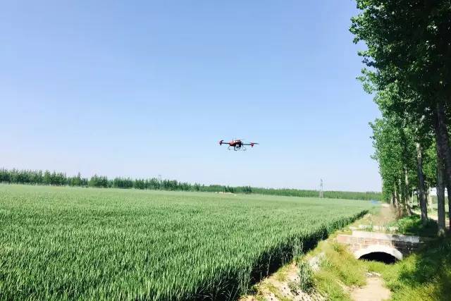 在开阔的麦田上方,先后有 60 余架 P20 2017 款植保无人机在平稳作业。其中,极飞农业河南运营中心派出了 10 架无人机,合作伙伴派出了 50 余架植保无人机。