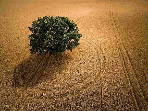 约克郡北部科尔顿附近的一片麦田里,圆圈围绕着一颗孤单的树