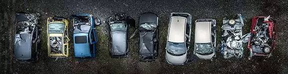 汽车回收站的报废汽车看起来像被打碎的玩具