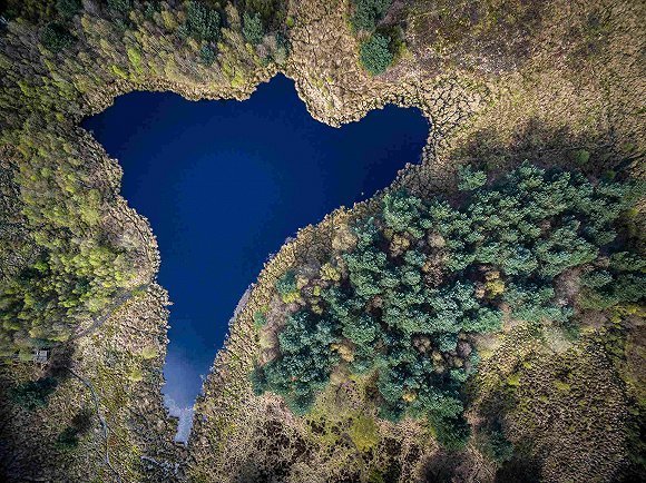 约克郡北部斯基普威思湖,从上往下看,这个墨黑的湖几乎不像是真的