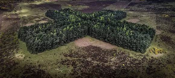 约克郡东部的Allerthorpe,摄影说这些树木的排列看起来像一把AK47