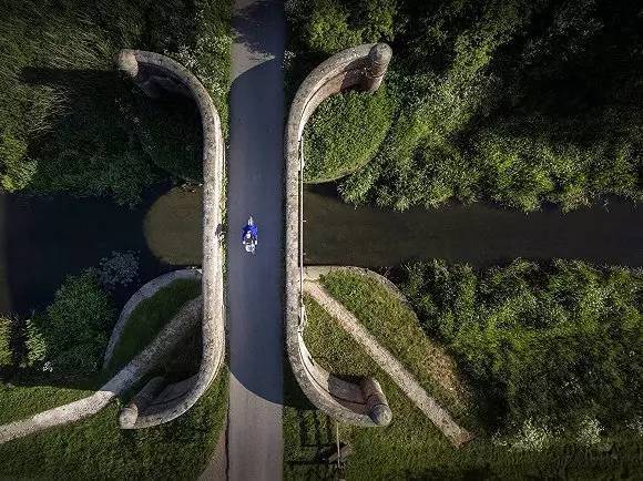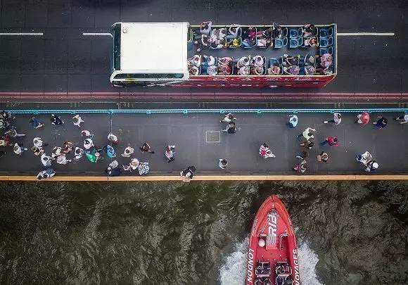 唯一一张不是用无人机拍的照片,摄影师在伦敦塔桥玻璃桥上向下拍摄的