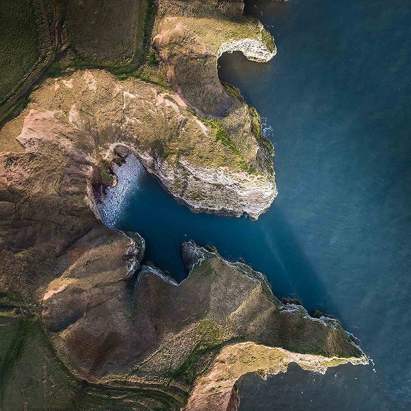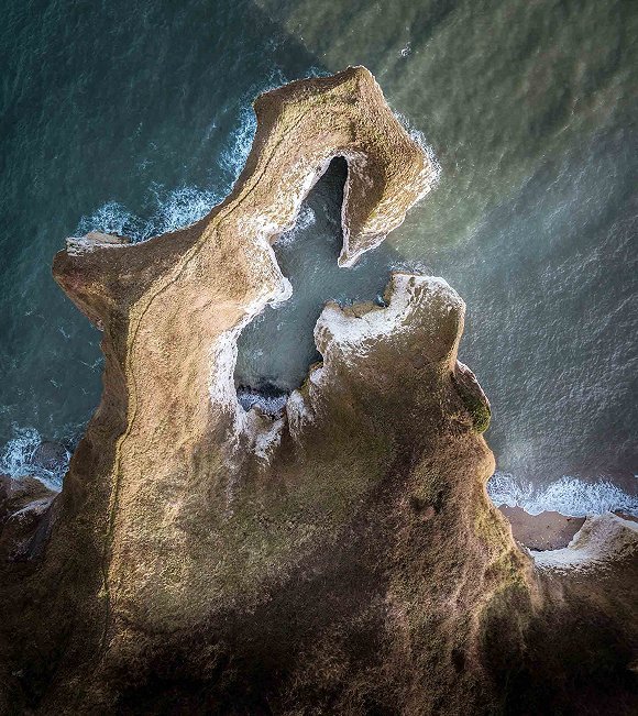 波浪长时间的冲刷,约克郡弗兰伯勒角的赛尔维克思湾形成了今天这样的锯齿状,这个角度来看像一只鸟爪子