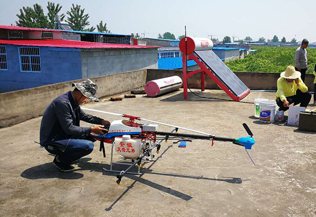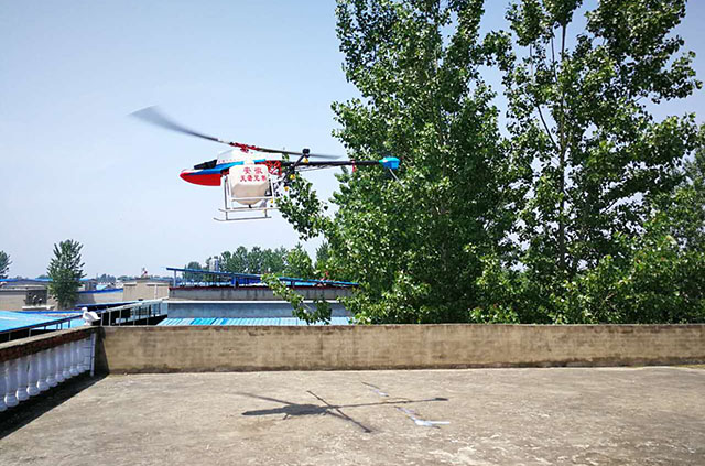 公司推广的大载荷燃 油动力无人飞机田鹰-999载重量达35公斤,续航时间长,可实现完全程控飞行。该机型作业效率高,采用先进的差分GPS系统,作业定位更准确,避免多 喷、漏喷等缺陷出现,自主飞行能够在设定区域内自动飞行喷药,喷药量随飞行速度变化而调整,保证每平方米喷药量一致,智能的航线规划功能省去人工飞行的劳 累。同时具有故障自检测功能,维护操作简单易学。
