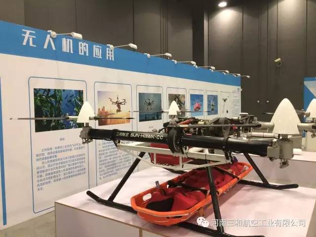 “祥云320”是我公司自主研发的世界上首架油动四旋翼载人无人机,其颠覆性超越常规的设计获得了国家发明专利。“祥云320”从根本上解决了目前四旋翼飞行器采用电动驱动,航时短载荷小,无法实现载人应用的技术瓶颈,我公司研发生产的大载荷长航时“祥云320”,在岛礁投送、应急救援、医疗救护、抢险救灾中发挥重要作用,同时也可应用在战地救护、物资投送等重要军事领域。