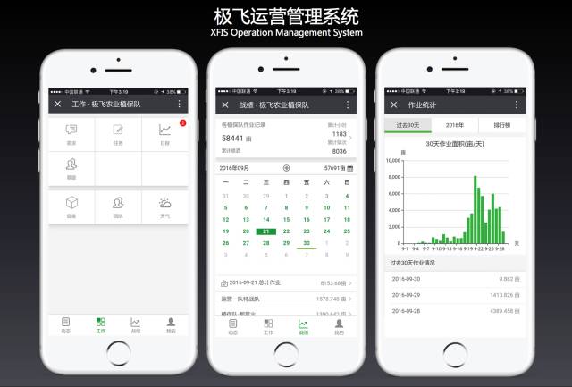 极飞还开发了监控管理系统和运营管理系统,不仅对购买、租赁无人机的用户开放相应权限功能,也能接入第三方监管。在监控管理系统上,用户可以实时查看作业进展、地块详细信息等。在运营管理系统上,用户可以查看和管理团队、无人机及相关设备,了解团队及设备的具体运作情况。