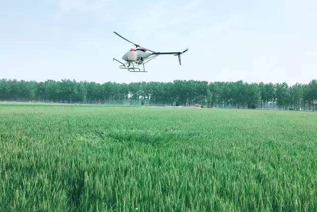 汉和水星一号此前在这里飞防作业的矫健身姿,强大的风场,均匀的喷洒,完美!对比一看,那时候的麦田还是绿油油的。