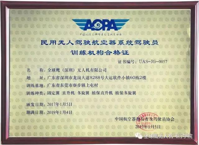 全球鹰无人机是经中国民用航空局授权、中国AOPA协会(中国航空器拥有者及驾驶员协会)审定合格的专业无人机驾驶员/机长训练机构。学院可以培训多旋翼、直升机、固定翼无人机机长/驾驶员。通过培训无人机技术、无人机行业应用、无人机操控等专业知识,协助学员通过AOPA无人机飞行考试,取得AOPA飞行执照,并引导学员成为无人机应用行业一流应用专才!公司集无人机研发、生产、销售、服务、培训为一体,具有丰富的无人机行业实际应用经验,能为学员提供实际应用方面指导。